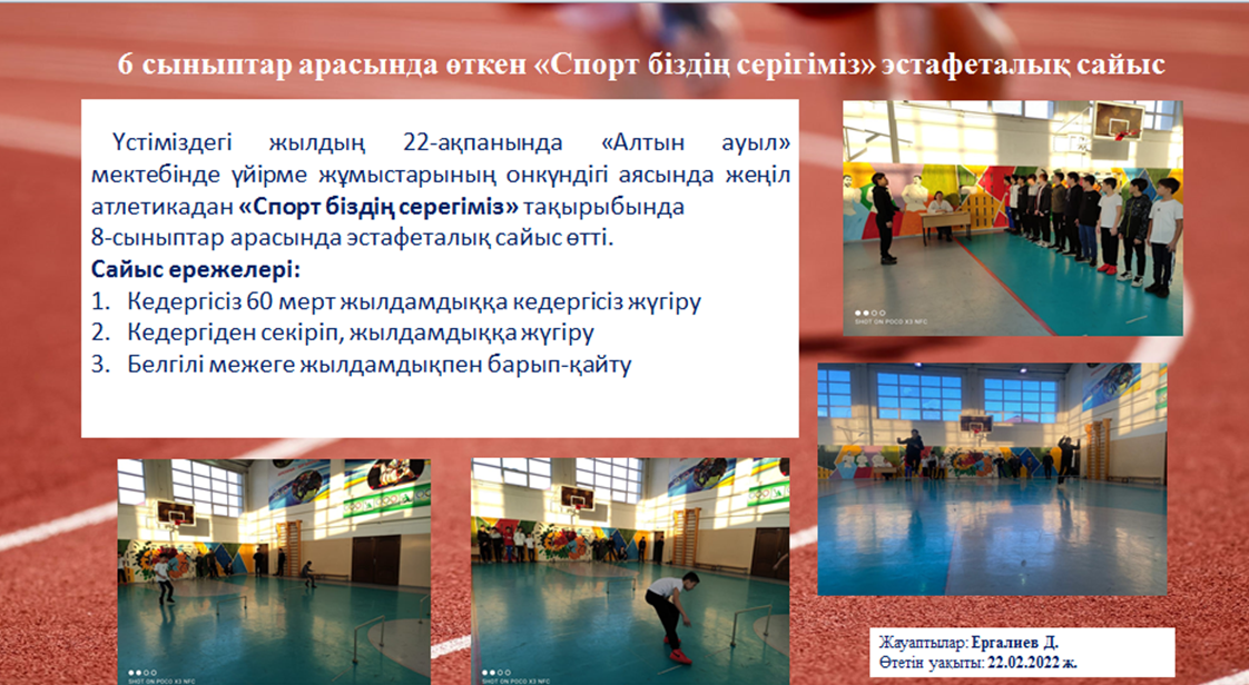 6 сыныптар арасында өткен «Спорт біздің серігіміз» эстафеталық сайыс » Қарасай ауданы «Алтын ауыл орта мектеп мектепке дейінгі шағын орталықпен» Education Department of Kerbulak district