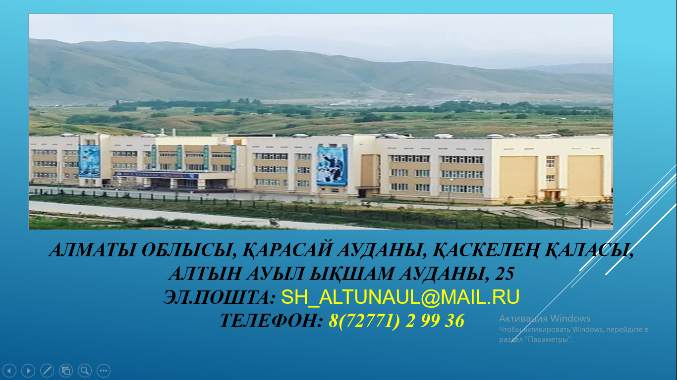«Алтын ауыл орта мектебі» коммуналдық мемлекет » Қарасай ауданы «Алтын ауыл орта мектеп мектепке дейінгі шағын орталықпен» Education Department of Kerbulak district