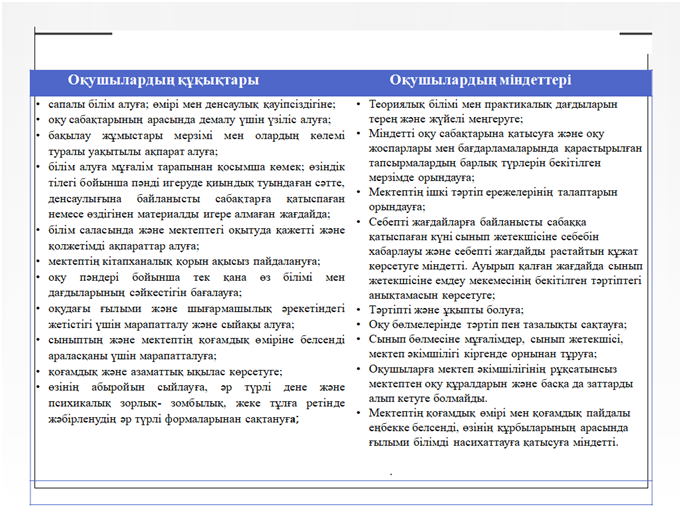 Мектептің ішкі тәртіп ережесі