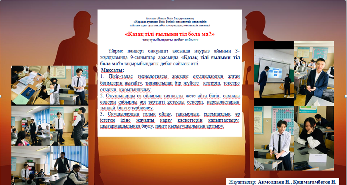 «Қазақ тілі ғылыми тіл бола ма?» тақырыбындағы дебат сайысы » Қарасай ауданы «Алтын ауыл орта мектеп мектепке дейінгі шағын орталықпен» коммуналдық мемлекеттік мекемесі