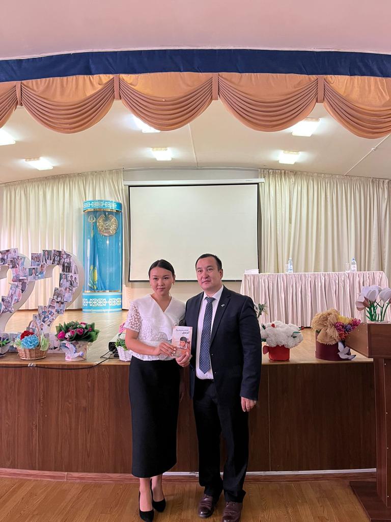 Мектебімізде “Мемлекеттік тіл - менің тілім” онкүндігінің кезекті іс-шарасы өтілді. Ақын, аудармашы, “Серпер” сыйлығының лауреаты, Қазақстан Жазушылар одағының мүшесі, ҚР Ақпарат саласының үздігі, ҚР Мәдениет саласының үздігі Саят Қамшыгермен кездесу өтті. Оқушыларды ақынның шығармашылығымен таныстырып, патриоттық рух беріп, адамгершілік қасиеттерге баулу, ақын өлеңдері арқылы халқына, тілге, Отанға деген сүйіспеншілік сезімдерін оятуды мақсат еткен кездесуде қызықты әңгімелер өрбіді. Жылы жүзді, дархан жүректі ақынның ғибратты әңгімесінен қатысушылар ерекше әсер алды. Қонағымызға шығармашылығы, өмірлік ұстанымдары туралы сұрақтар қойылып, 7 “А” сынып оқушысы Коел Ақерке “Сағыныш” мен  7  “А” сынып оқушысы Каирбаева Жанерке “Туған елім”өлеңдерін оқыды. Кездесуді ұйымдастырған: “Жас қаламгер” ұйымының жетекшісі, қазақ тілі мен әдебиеті пәнінің мұғалімі Сатыбалды Майра Нұрланқызы.