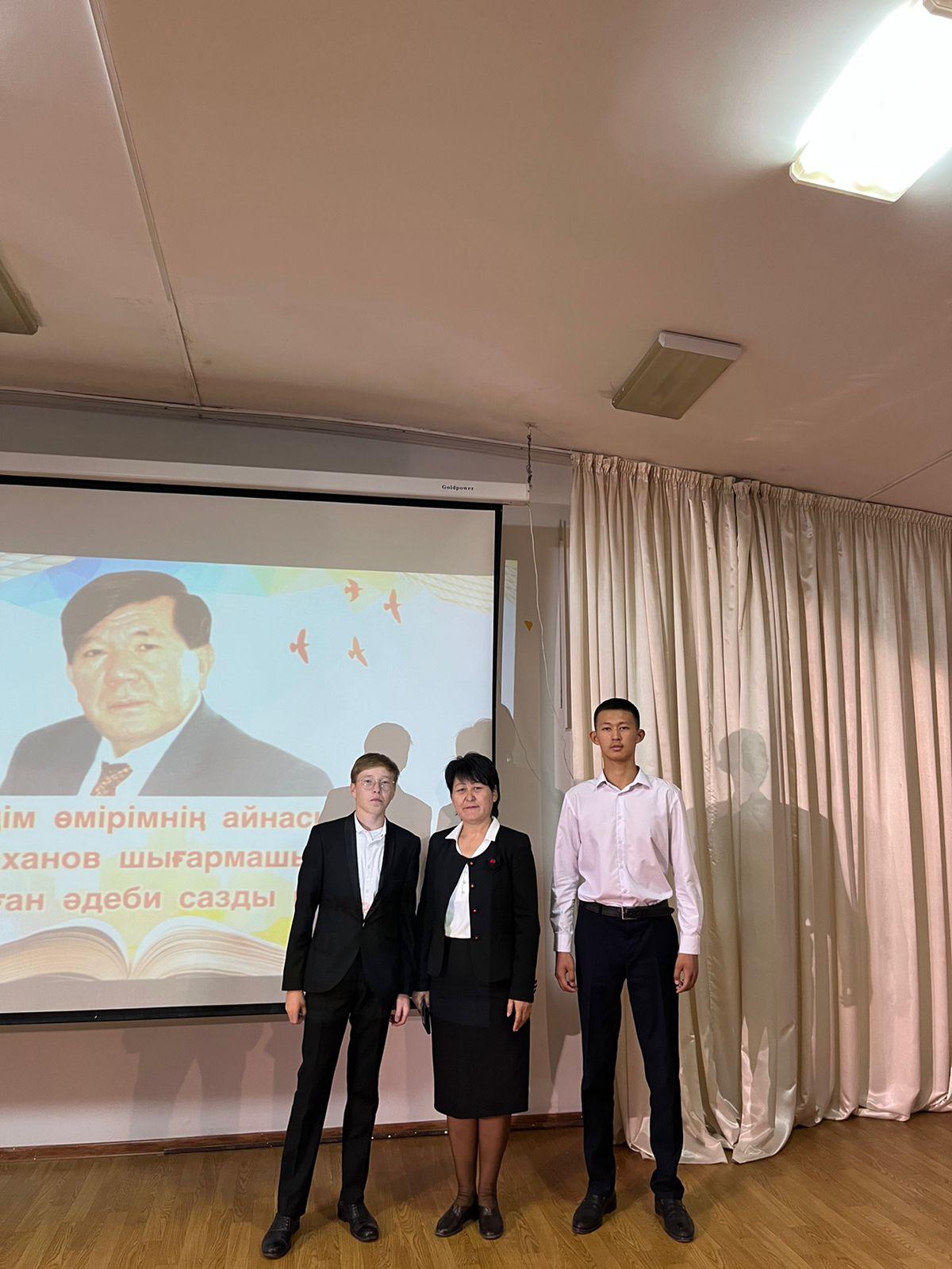 29.09.2022ж мектебімізде қазақ тілі мен әдебиеті пәнінің мұғалімдері Д.Битенова мен М.Сатыбалдының ұйымдастыруымен ұлтқа шын жанашыр, рухы биік, елге еңбегін молынан сіңірген нағыз азамат, «Қазақстанның Еңбек ері» атағының иегері, Ғасырымыздың Ұлы тұлғасы, ақын Мұқтар Шаханов шығармашылығына арналған «Өлеңім – өмірімнің айнасы» атты әдеби-сазды кеш өтті. Рухани кеште көрермендер кеш иесі жайындағы деректі фильмді тамашалап, рухани азық алды. Ақынның авторлық әндері шырқалып, қара өлеңді жанына серік еткен Шаханов ізбасарлары ән-жырдан шашу шашты, қазақ рухын асқақтатты.