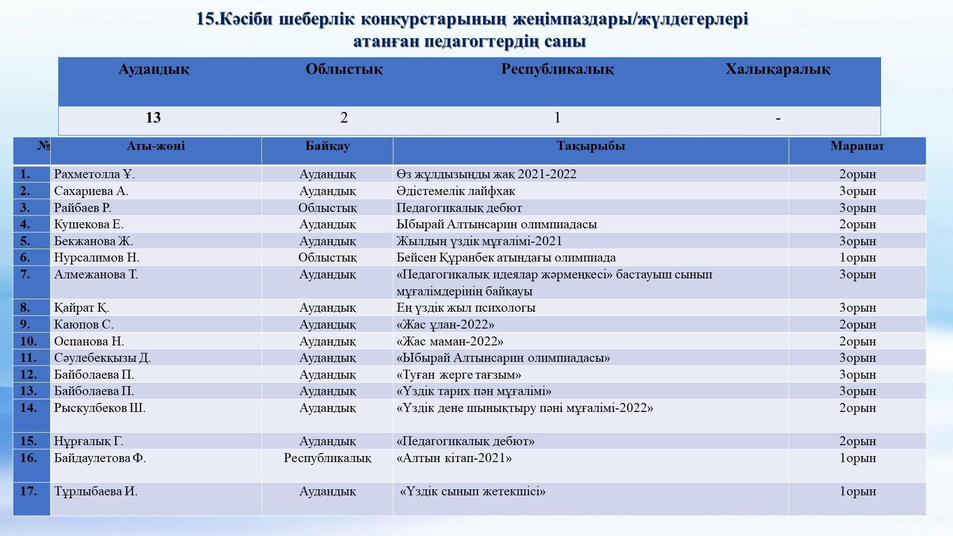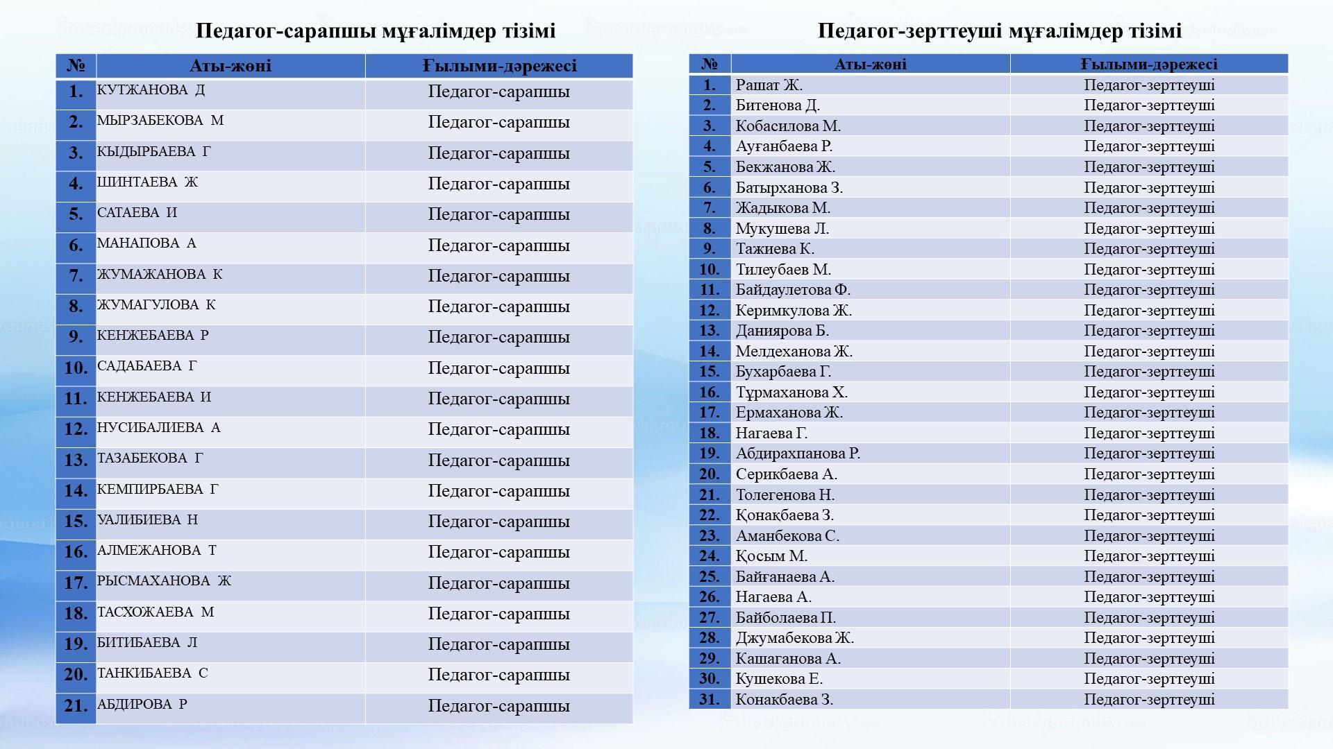 Білім беру ұйымдары педагогтерінің үлесі » Қарасай ауданы «Алтын ауыл орта мектеп мектепке дейінгі шағын орталықпен» коммуналдық мемлекеттік мекемесі