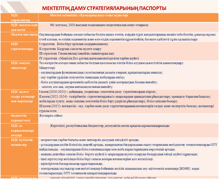 2020-2025 даму жоспары » Қарасай ауданы «Алтын ауыл орта мектеп мектепке дейінгі шағын орталықпен» коммуналдық мемлекеттік мекемесі