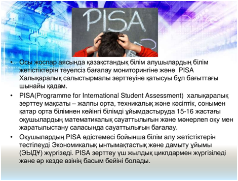13 ноябрь 2020 0 1 2 3 4 5 PISA тапсырмаларын математика сабағында қолдана отырып, оқушылардың функционалдық сауаттылығын дамыту