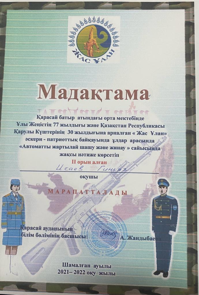 23 май 2022 0 1 2 3 4 5 Қазақстан Республикасы Қарулы Күштерінің 30 жылдығына арналған "Жас Ұлан" әскери патриоттық байқауы