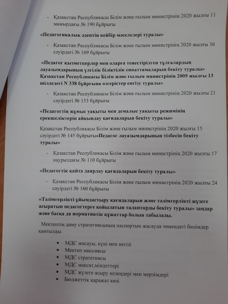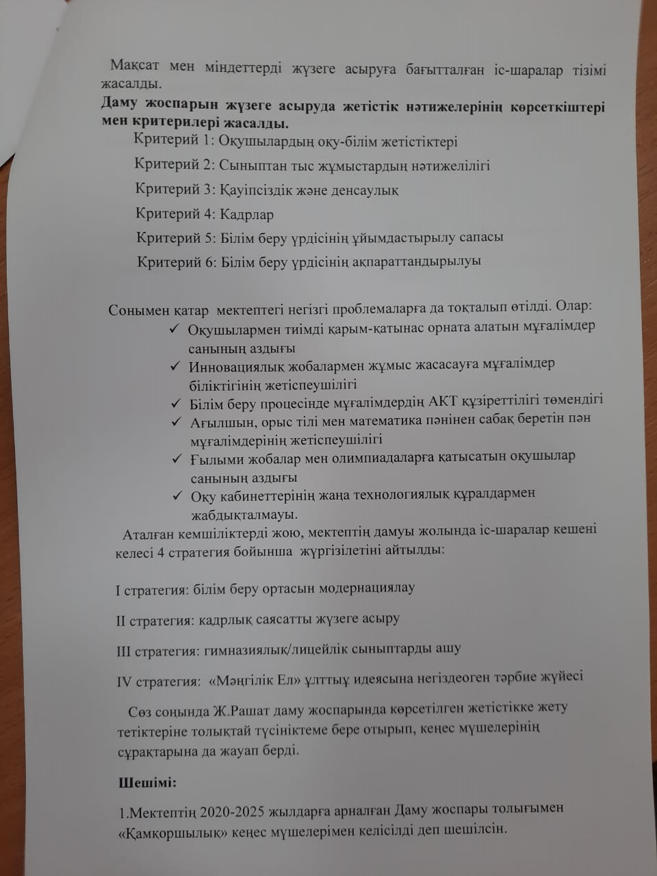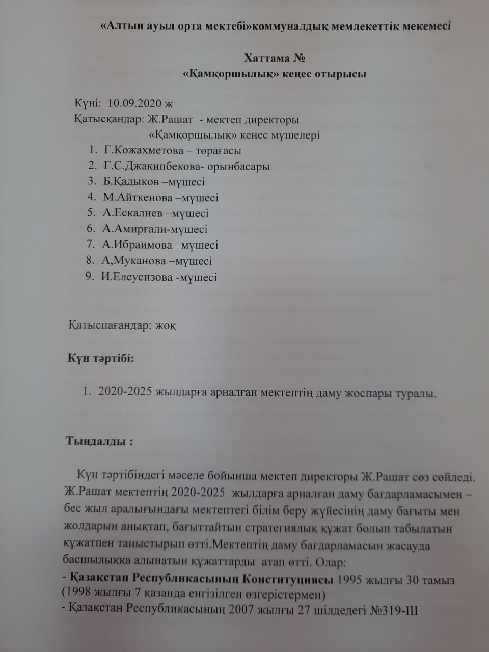 10 сентябрь 2020 0 1 2 3 4 5 Хаттама Қамқоршылық кеңес жанындағы 2020-2025 жылдарға арналған мектептің даму жоспары