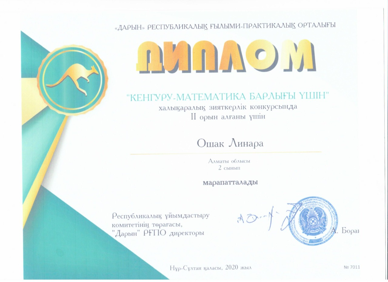 Ошак Линара » Қарасай ауданы «Алтын ауыл орта мектеп мектепке дейінгі шағын орталықпен» коммуналдық мемлекеттік мекемесі