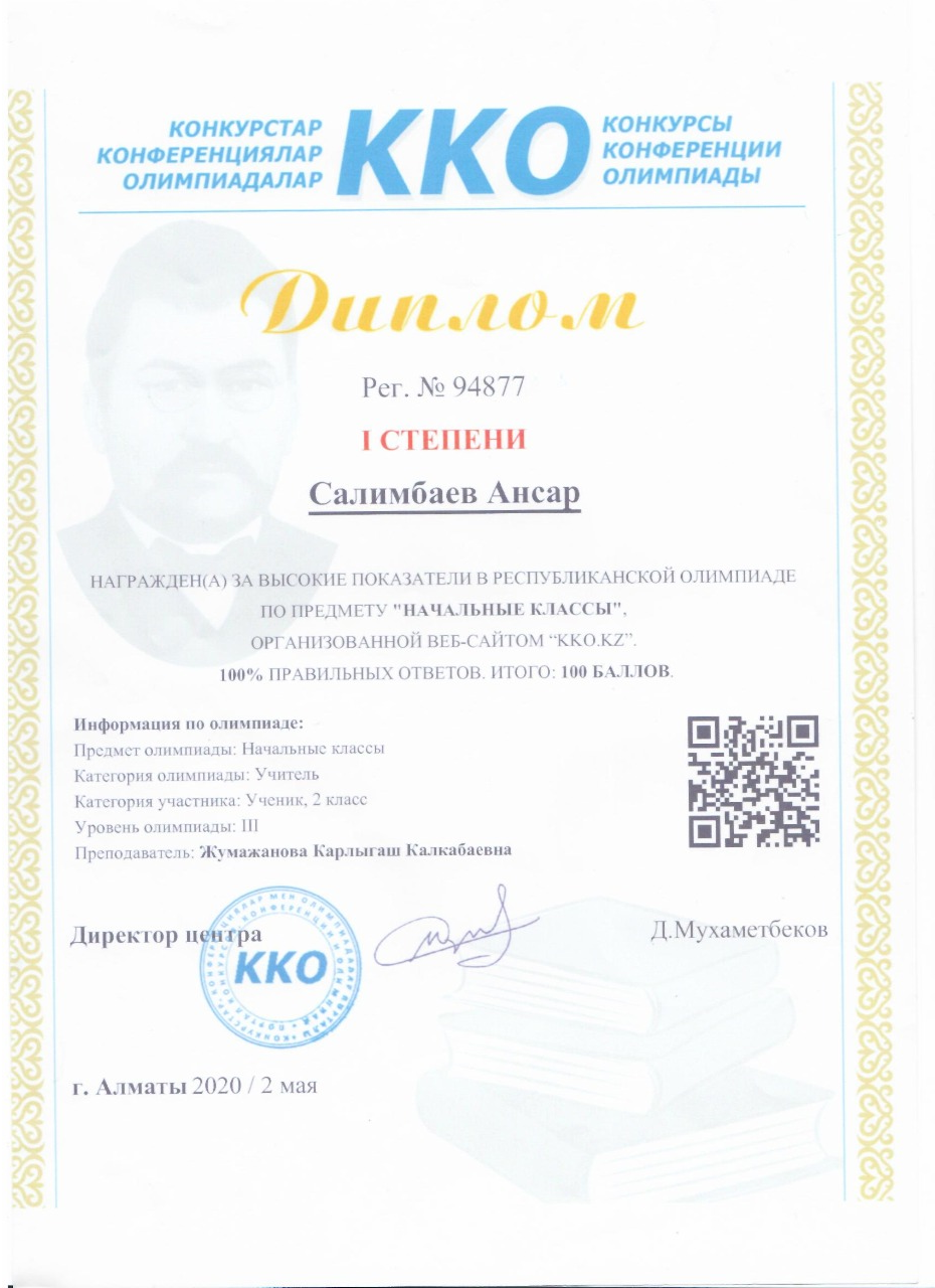 Салимбаев Ансар » Қарасай ауданы «Алтын ауыл орта мектеп мектепке дейінгі шағын орталықпен» коммуналдық мемлекеттік мекемесі
