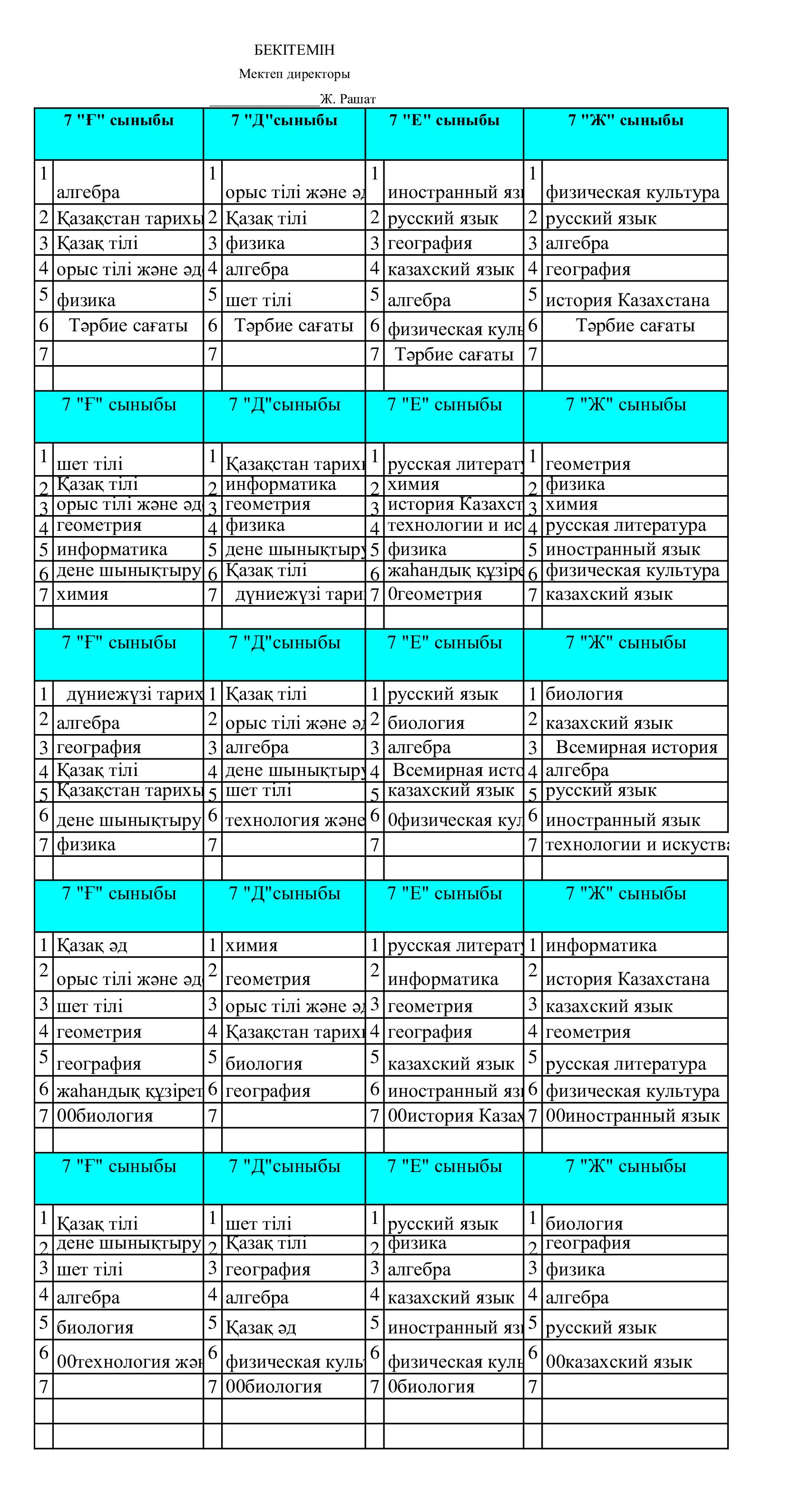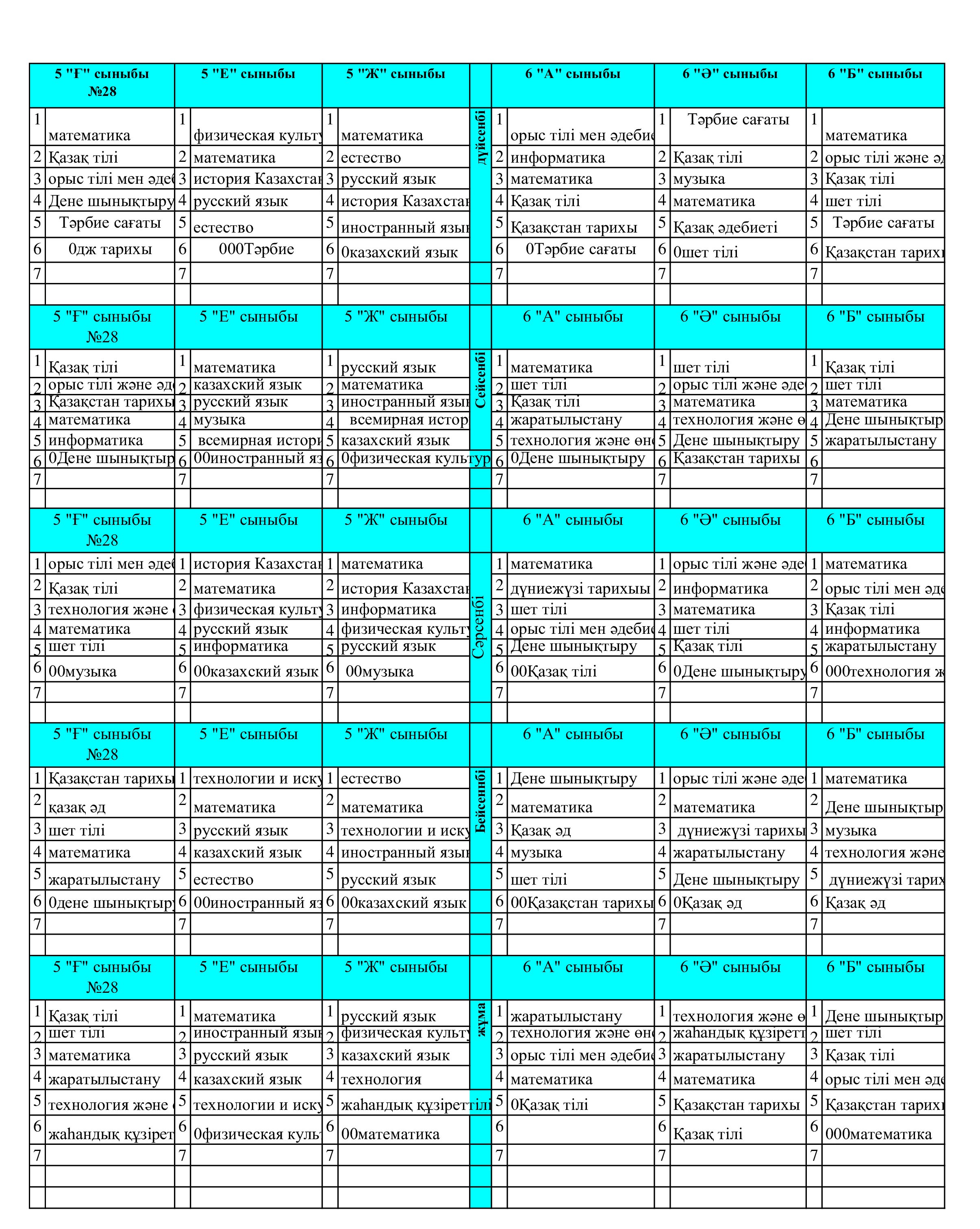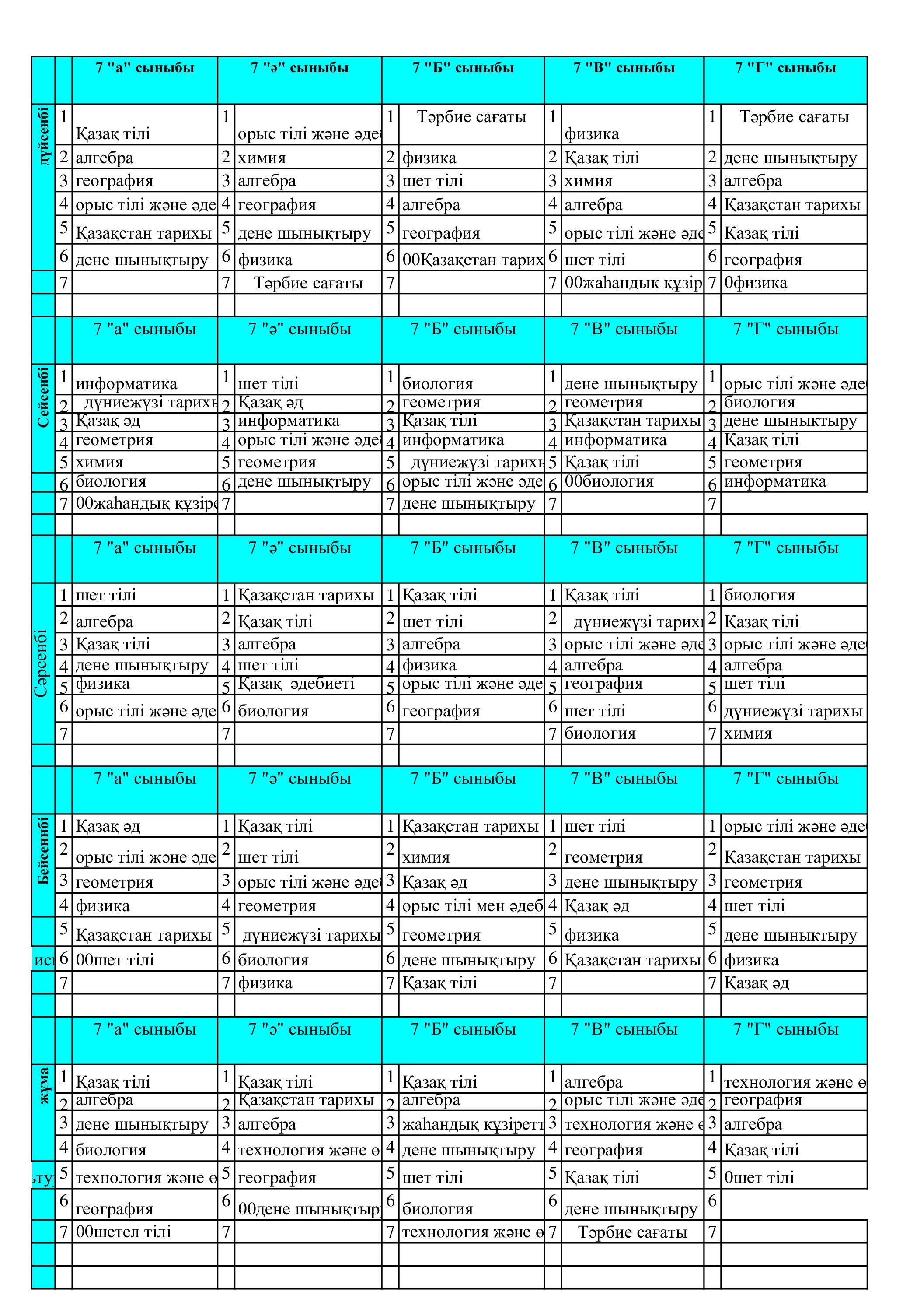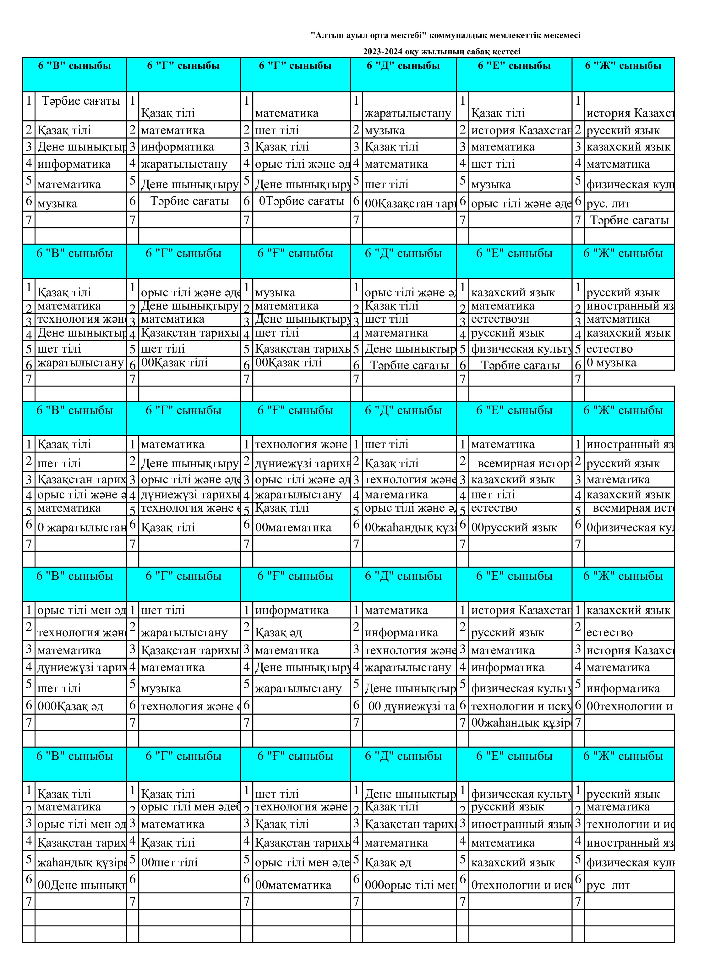 2023-2024 оқу жылының сабақ кестесі II ауысым