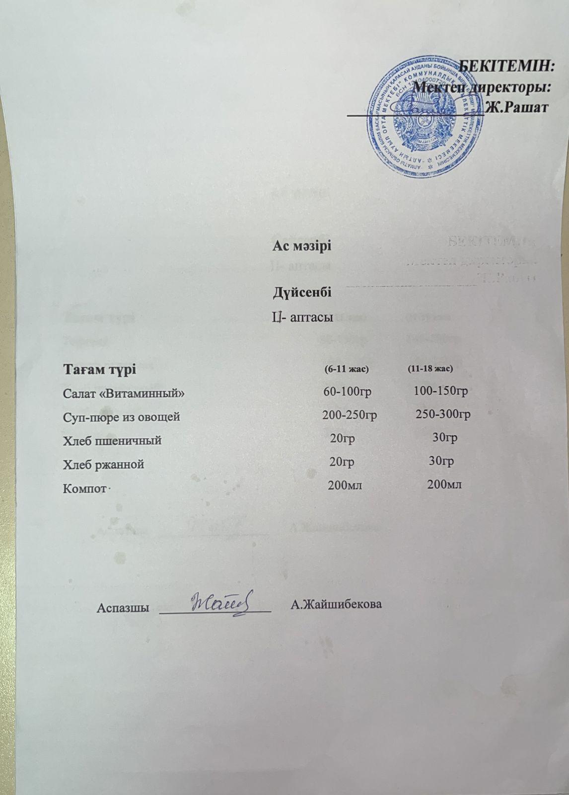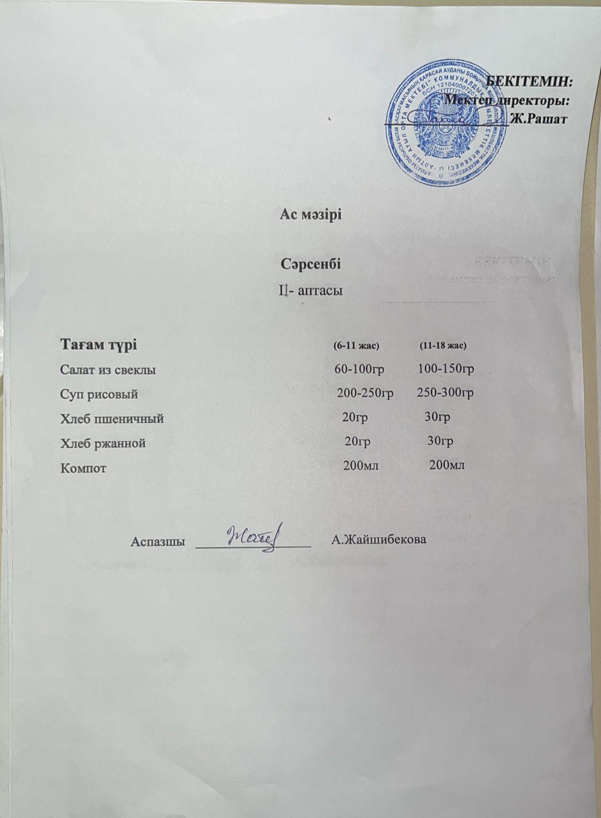Білім алушыларды тамақтандыруды ұйымдастыру қағидалары » Қарасай ауданы «Алтын ауыл орта мектеп мектепке дейінгі шағын орталықпен» коммуналдық мемлекеттік мекемесі