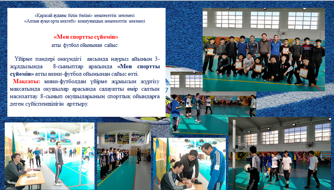 «Мен спортты сүйемін» атты футбол ойынынан сайыс » Қарасай ауданы «Алтын ауыл орта мектеп мектепке дейінгі шағын орталықпен» отдела образования Кербулакского района