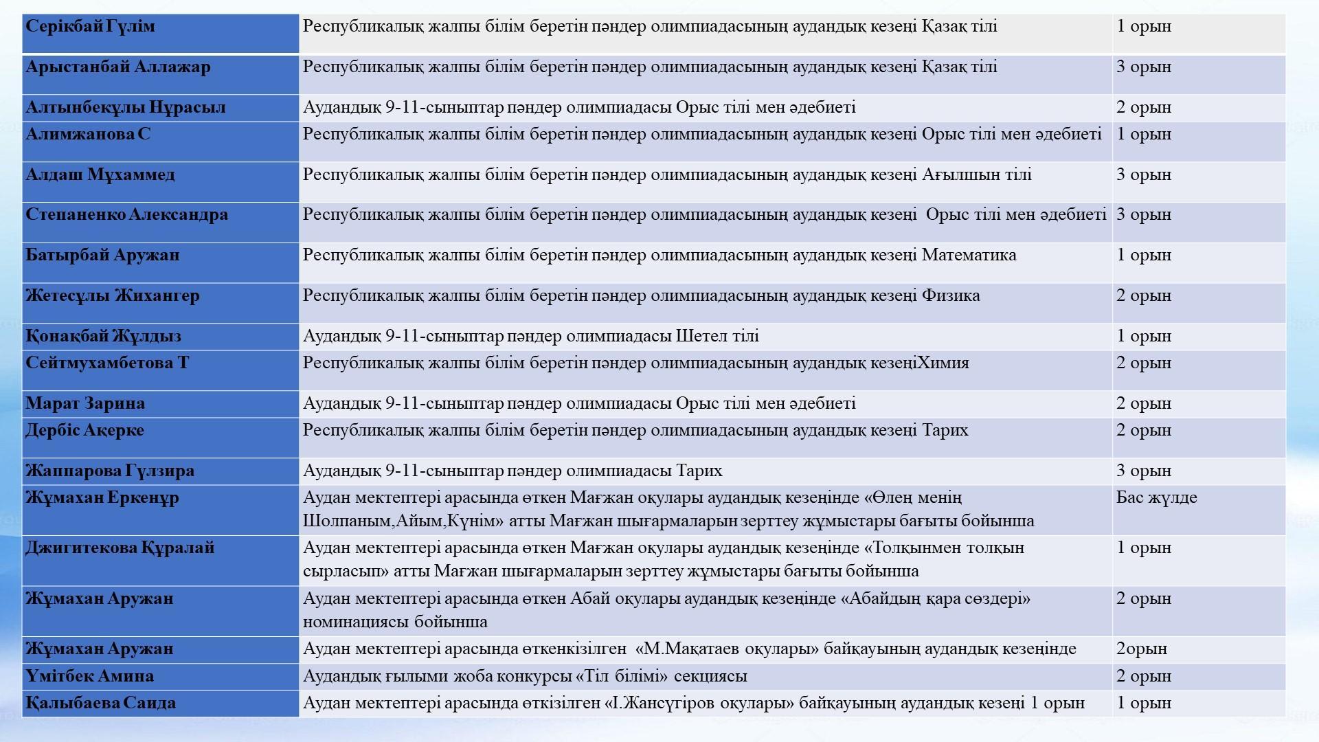 Оқушылардың зияткерлік олимпиадалар мен конкурстарға қатысу нәтижелері https://altyn-auyl-karasai.mektebi.kz/o-detskom-sade/zhetstktermz/712-oushylardy-zijatkerlk-olimpiadalar-men-konkurstara-atysu-ntizheler.html https://altyn-auyl-karasai.mektebi.kz/o-detskom-sade/zhetstktermz/712-oushylardy-zijatkerlk-olimpiadalar-men-konkurstara-atysu-ntizheler.html https://drive.google.com/drive/folders/1xz1W_OVs0Bzmia8UbI2kgWElq2-qRwcP?usp=drive_link​​​]]> https://drive.google.com/drive/folders/1xz1W_OVs0Bzmia8UbI2kgWElq2-qRwcP?usp=drive_link​​​]]> admin Fri, 11 Oct 2024 12:51:23 +0600 Авторлық бағдарламалар https://altyn-auyl-karasai.mektebi.kz/o-detskom-sade/zhetstktermz/711-avtorly-badarlamalar.html https://altyn-auyl-karasai.mektebi.kz/o-detskom-sade/zhetstktermz/711-avtorly-badarlamalar.html https://drive.google.com/drive/folders/1jtio-x587LnTOGlJ1Xtc87mwZnmkzUak?usp=drive_link​​​]]> https://drive.google.com/drive/folders/1jtio-x587LnTOGlJ1Xtc87mwZnmkzUak?usp=drive_link​​​]]> admin Fri, 11 Oct 2024 12:48:33 +0600 Кәсіби шеберлік конкурстарының жеңімпаздары/жүлдегерлері болған педагогтер https://altyn-auyl-karasai.mektebi.kz/o-detskom-sade/zhetstktermz/710-avtorly-badarlamalar.html https://altyn-auyl-karasai.mektebi.kz/o-detskom-sade/zhetstktermz/710-avtorly-badarlamalar.html https://drive.google.com/drive/folders/1uorslcIswflWM1j7wo936J0CTEM3wrUw?usp=drive_link